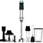 Особливо зручними є додаткові ємності: мірний стакан об’ємом 0.8 л та міні-подрібнювач на 600 мл із захистом від бризок, що дозволяють готувати та зберігати страви без зайвих зусиль. Довга металева ніжка забезпечує ефективність як у широких каструлях, так і в високих склянках, досягаючи кожного куточка для якісного подрібнення та змішування.
